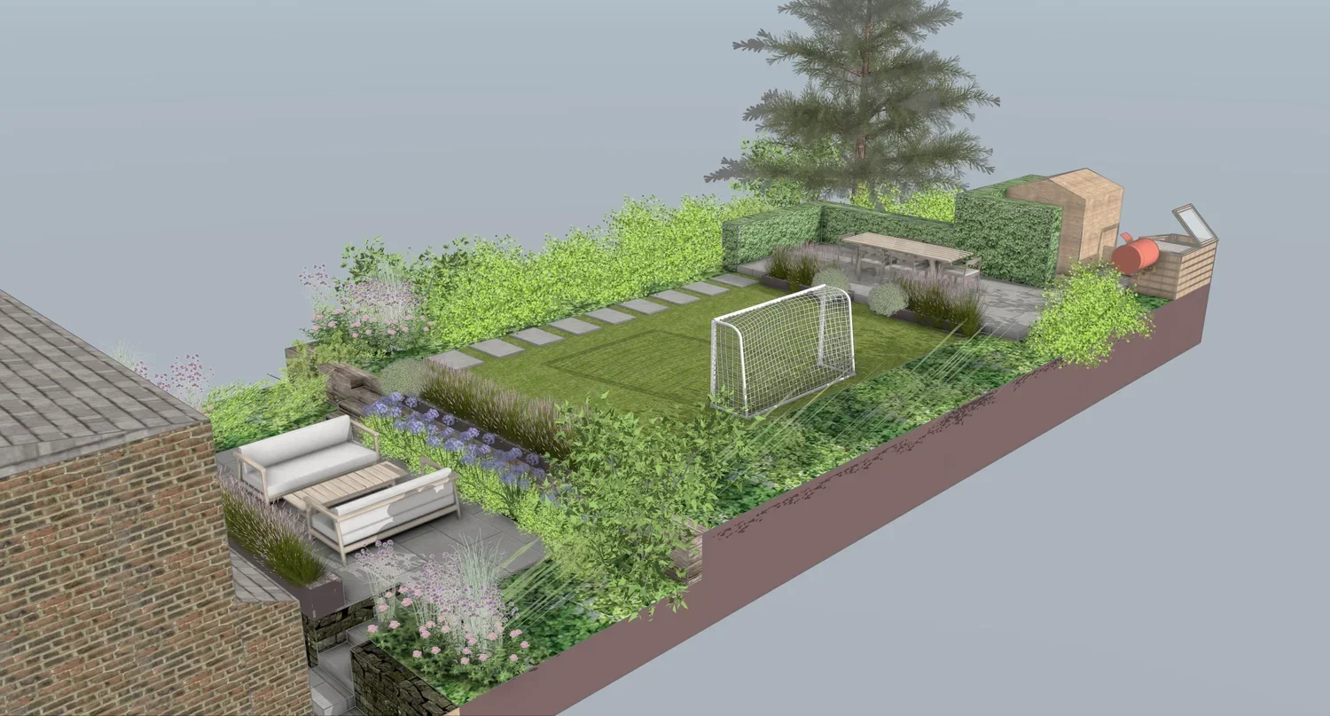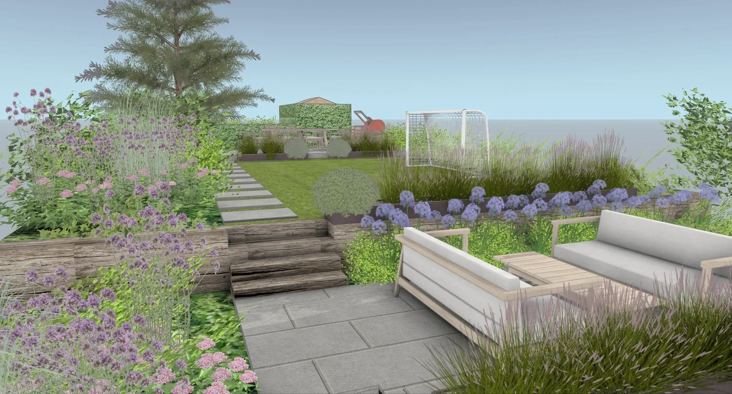 Amongst the garden we will install and plant up some rusted meta planters to section off the garden and create different rooms. This also makes a garden feel like one you want to explore as you go through each section.