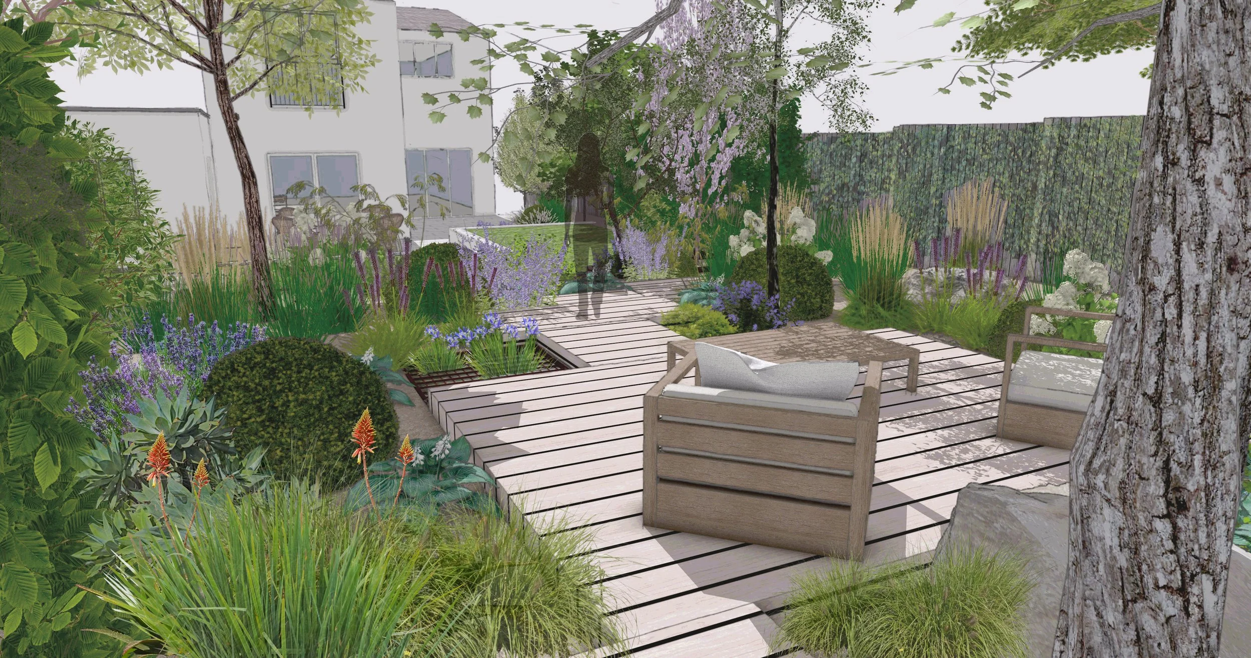 The planting, that will not be irrigated will focus around drought and heat tolerant species, introducing texture and form that will work in the space and work with the fun elements of the design.